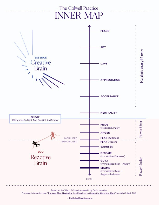 What I do instead is shift my physiology, then believe my Creative Brain. (“We’re all one.” “We’re doing the best we can.” “Together, we can solve anything.” “I’m here, now, and can connect with myself, find my truth, discover what I really want—and take those actions.”